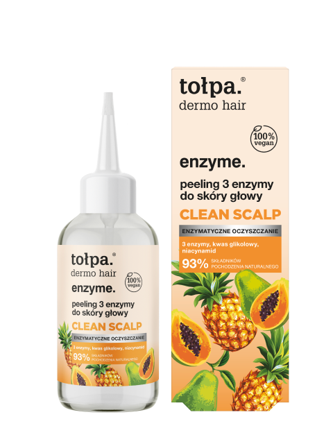 W pielęgnacji włosów enzymy w peelingu i szamponie delikatnie, a skutecznie oczyszczają skórę głowy, usuwają pozostałości takie jak np. silikony, chlor, łupież, martwy naskórek czy sebum. Z kolei w odżywkach i maskach enzymy dodatkowo działają wygładzająco na włókno włosa